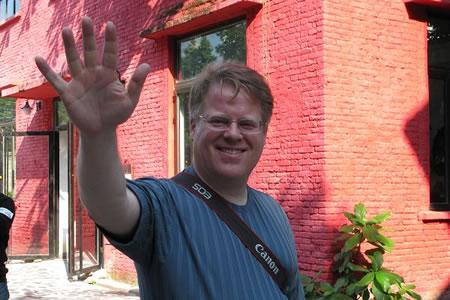这位红杉男士不写博客,也不接受采访,只是拿着手持迷你摄像机在现场录像引起海内外与会人士好奇,成为会场热点之一。他不接受采访,只好替他拍照留念,我也凑了热闹。他鼓掌的时候,我替他担心拍坏了设备。
